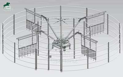 Our professional automatic horse exercisers are available in diameters ranging from 10m to 22m, accommodating 4 to 10 horses at a time.
