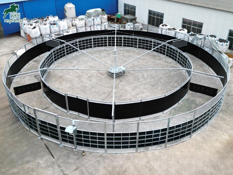 Response: Hope Horse automatic horse walker use high-strength galvanized steel and weather-resistant materials, ensuring over 20 years of rust-free operation. The semi-enclosed and fully enclosed roof designs can withstand even the harshest weather.