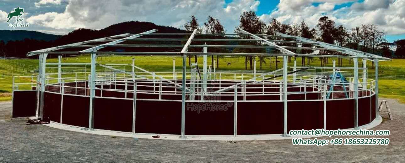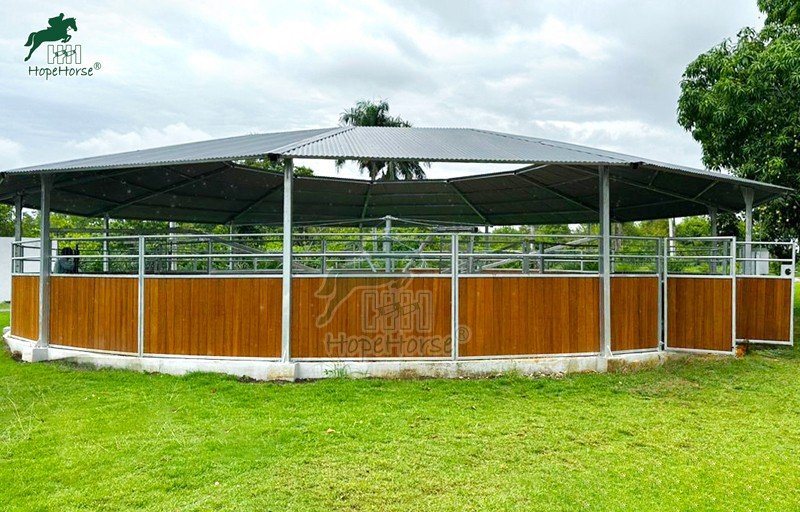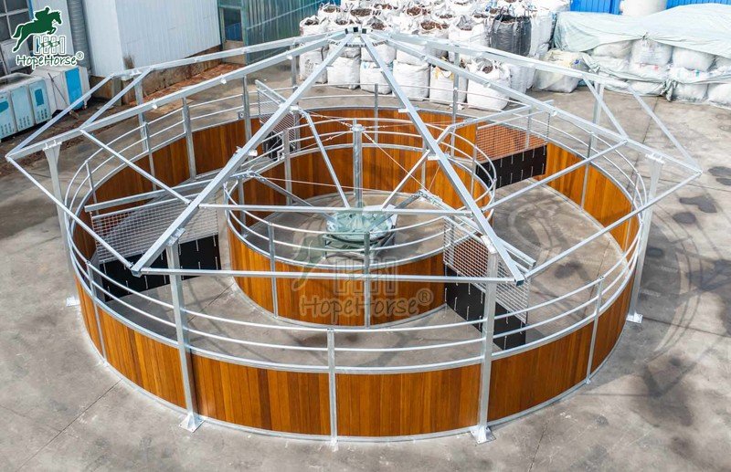 The semi-enclosed design helps shield horses from wind, rain, and direct sunlight, creating a more controlled training environment that boosts efficiency.