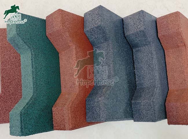 The interlock rubber paver made from recycled rubber, are known for their durability, flexibility, and resilience. The key feature of these pavers is their ability to interlock with one another. This design allows for a secure and stable installation. Rubber pavers are versatile and can be used in various applications, both indoors and outdoors.