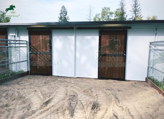 Horse Stall with Run: Combines an indoor stall with an outdoor enclosure, allowing horses to move freely between spaces—reducing stress and encouraging natural movement.