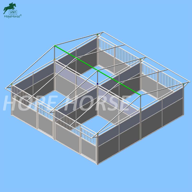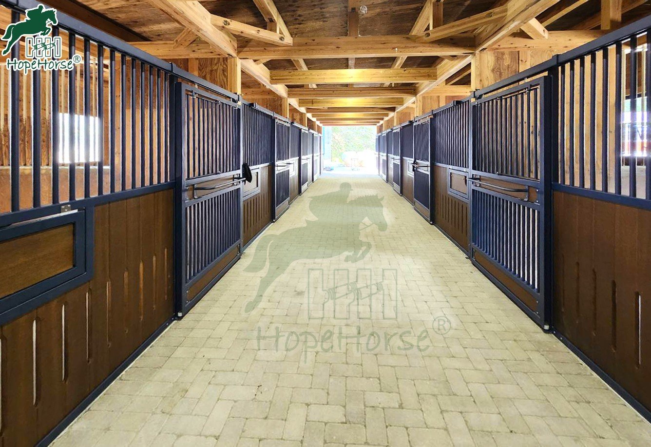 The purpose of setting up a stable is to provide horses with a safe and comfortable living environment, which can protect horses from bad weather on a daily basis and is conducive to the health and cleanliness of horses. In addition, stables can prevent horses from getting injured or lost, because horses are more easily frightened, so a stable and safe environment can reduce their anxiety and stress. In addition, stables help horse owners to better take care of the horses' diet, exercise and daily care. For example, stables usually have special areas to store horse feed, hay and horse gear, and also have bathing areas and treatment areas to facilitate cleaning and checking the health of horses, isolating horses when they are sick to avoid infecting other horses, etc.