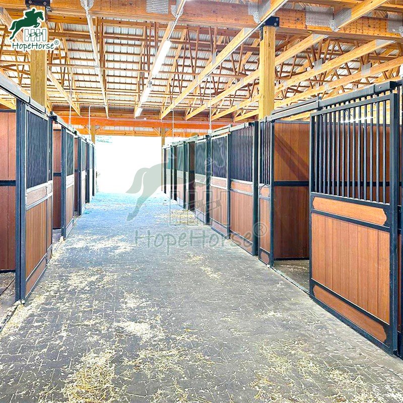 Windows can be installed in the stable. On the one hand, windows can effectively promote air circulation, keep the air in the stable fresh, and avoid the accumulation of stuffiness and humidity; they can also meet the light needs of horses, help horses maintain a normal biological clock, and reduce the dark and humid environment in the stable; on the other hand, they can also provide horses with a field of vision, allowing them to see the outside environment, reducing their anxiety and fear. Horses can feel the changes and movements in the outside world, reducing boredom and stress.